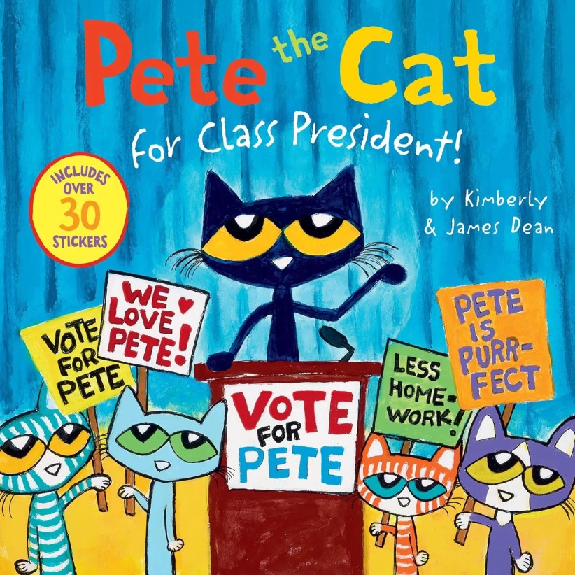 In a charming storybook by bestselling author-illustrator duo Kimberly and James Dean, Pete the Cat is running for class president alongside Callie, who has impressive posters and ideas. Pete, on the other hand, brings his own groovy ideas, along with a love for baking cookies and performing guitar onstage for his campaign. The tale unfolds with themes of kindness and friendship as readers discover which cat will become the next class president. The book also includes a glossary of election-day vocabulary and features over thirty stickers.