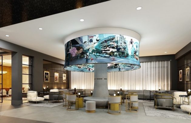 What does that mean? Well, local creatives are invited to curate exhibitions and video art in the hotel space, as well as perform pop-up shows and cutting-edge installations. Every detail is considered; even the hotel staff has artist-designed uniforms. Be greeted first by a “firescape” (silhouettes that appear to scale the façade) and, on the 12th floor, you’ll find a video art sculpture where it seems suitcases are falling from the sky. And that’s only the start of all the innovative art that will surround you.
