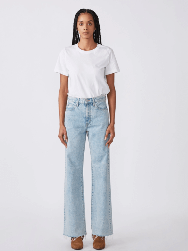 If you have been feeling like you are living through the ’90s again. You’re not wrong. The 90s styles, especially in denim, are huge right now. And while this style can be pretty comfy, the best way to wear it IRL is to have it be a bit more streamlined. Meaning skip the jeans that hit the pavement and may pass as a skirt and choose a straight leg that works with your body type and life.
