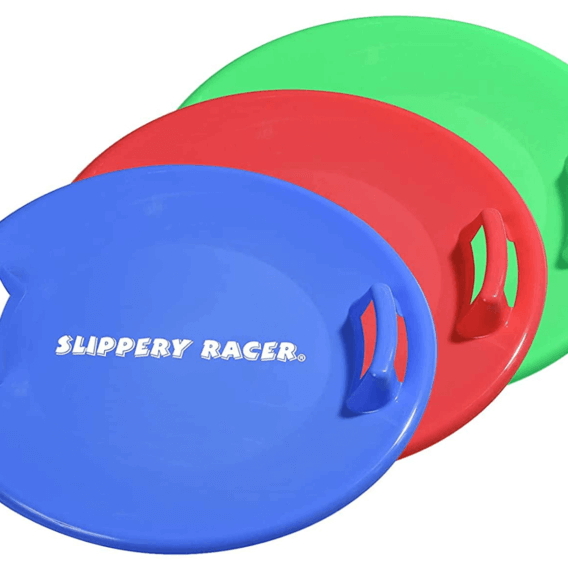 Slippery Racer Downhill Pro Saucer Disc Sled is fun for everyone and built strong for a sled ride down any snowy terrain. Kids will love the cozy disc design in red, green, or blue. Parents will love that it is coated with Slippery Racer’s exclusive IceVex cold-resistant treatment, has molded hand grips, and is made with heavy-duty, flexible slick-coated plastic. $27.99, buy a 3 pack on Amazon.