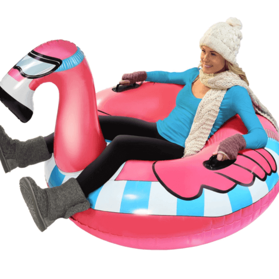 GoFloats Winter Snow Tubes are the ultimate sleds, and the fun designs are sure to turn heads as you sled down the hills. Kids will love the adorable animal designs like flamingos, dragons, and unicorns decked out in their winter sledding gear. It is perfect for sledding down snowy hills in style. Parents will love that it is cold weather treated to it both fun and functional and that the unique GoFloats valve inflates in seconds, so you’re ready for the snow in no time. $29.99
