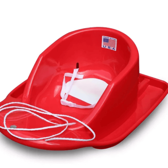 Lucky Bum Torpedo Sleds are fun for kids of all ages, lightweight, and virtually indestructible for the best snow day adventures. Kids will love that the sleds come in red, green, or blue and that it works. Super-slick plastic and grooved channels create a fast ride and excellent carving as the grooves bite into the snow. Parents will love that it is strong and durable, has built-in handles for kids to grip, and is made in the USA with BPA and Phthalate free construction. $30