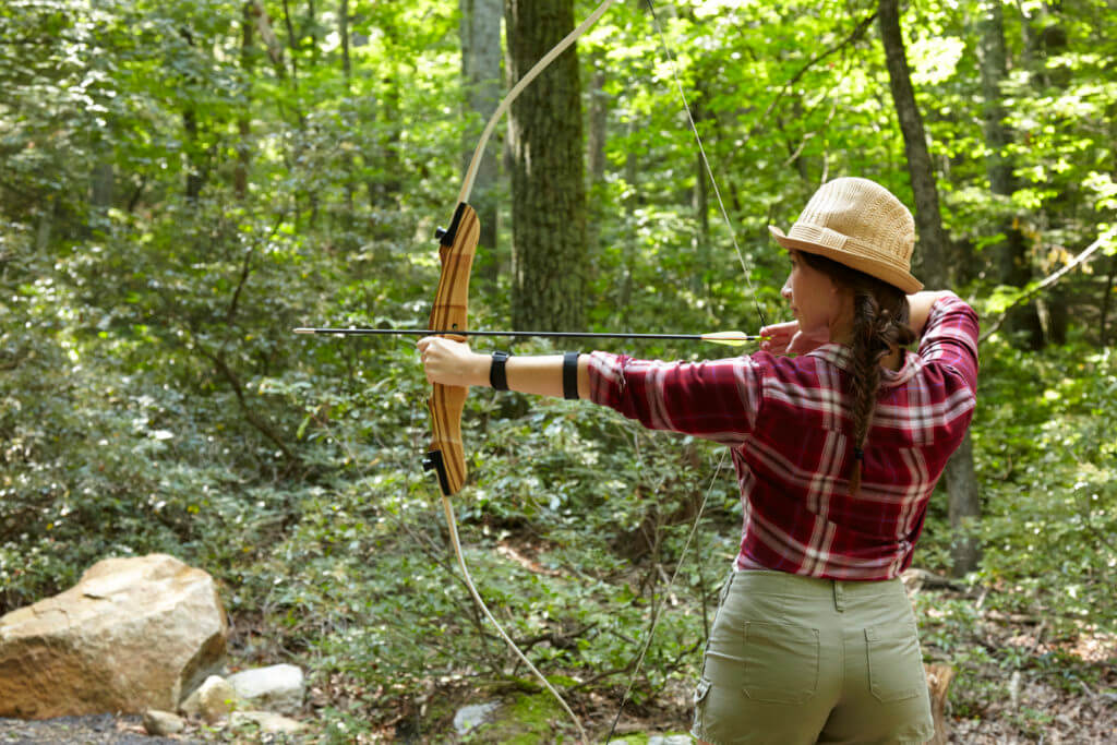 Our scheduled activity of the day was archery, so after the scramble, we hightailed it over to the range and joined a group to learn the basics. Learning how to shoot a bow and arrow felt just right surrounded by earthy woods, and the instructor was both kind and helpful. We each got at least three turns to hit the target, and most everyone in our group of all ages did just that—though there were a few stray arrows.
