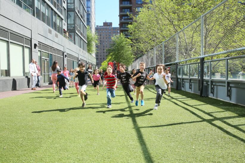 Students enjoy the spacious terrace at BASIS Independent Manhattan Lower School, which serves PreK-grade 5