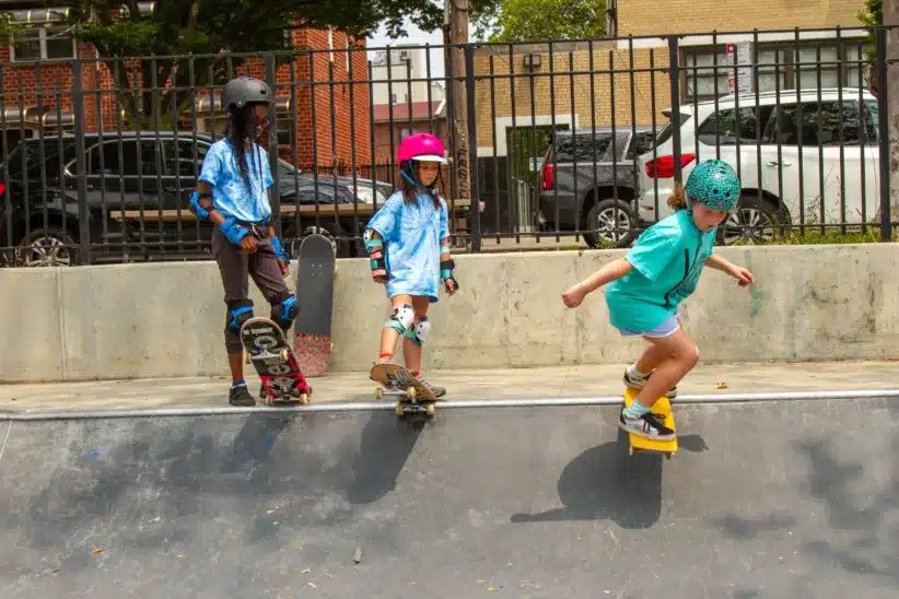 Skateboarding’s popularity among girls has grown in recent years due to more role models at popular events such as the Olympics with female skateboarders. Skateboarding is a great activity for girls seeking a creative outlet that combines balance, coordination and lots of persistence. Even if they are not into athletic sports, the individual nature of skateboarding allows each student to set their own goals and make progress at their own pace. With safety gear and obstacles designed for beginners, skaters can learn little by little without taking big risks. Many of the students at SKATEYOGI, a Brooklyn-based skateboarding school, are girls where classes are taught in an open-level format with an emphasis on fun and creativity. Skateboarding is for everyone!