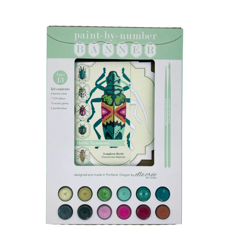 If one of your goals is less screen time and more art, this banner kit includes unique die-cut cards printed on 100% paperboard. There are six beetle encyclopedia plates . Not only will your artist learn about each bug’s name, but you will also be able to paint these cards and have miniature art pieces to keep or be framed by you. Ages 13 +, $44, Nathanandco.com.