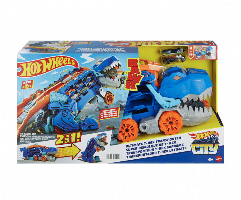 Kids will go “car-azy” that the Hot Wheels City Ultimate T-Rex Transporter can gobble up and haul more than 20 cars and then transform into a growling, stomping T-Rex with a race track on its back! In hauler mode, pull it by the handle and watch it eat the cars in its path, or lower the tail and it transforms into a Robo T-Rex with lights and sounds and a two-lane race track. Kids will also love making the T-Rex spit out and launch the cars from its mouth! Parents will love the two play modes, that it can store more than 20 cars, and watching the kids enjoy imaginary play. Ages 4+, $55.99, amazon.com.