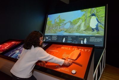 The varied interactives throughout the exhibition offer children an opportunity to learn while they play. They can climb into the huge, life-sized Gigantoraptor’s nest, guess the identity of a dinosaur in “Whose Egg Is It Anyway?” or build their own dinosaur in the “Will It Fly?” interactive.
